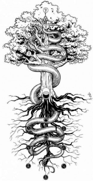 Самой сильной трактовкой обладает татуировка с Древом жизни, которое описывается в культурах множества народов. В религии христиан Древо жизни росло в эдемском саду, в котором также было дерево познания добра со злом. В христианстве данное дерево обозначает непрерывную связь всех и всего с Богом. Древо, на котором растут листья, а также плоды, обозначает крепкое здоровье. Кельты описывают в своих мифах Мировое древо, которое является неким аналогом Древа жизни и обозначает центр всего мира. Такое же дерево описано древними ацтеками.