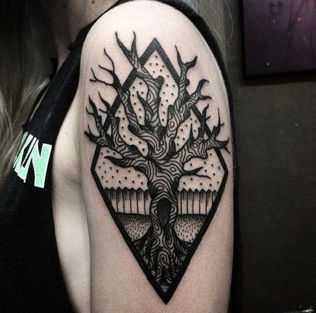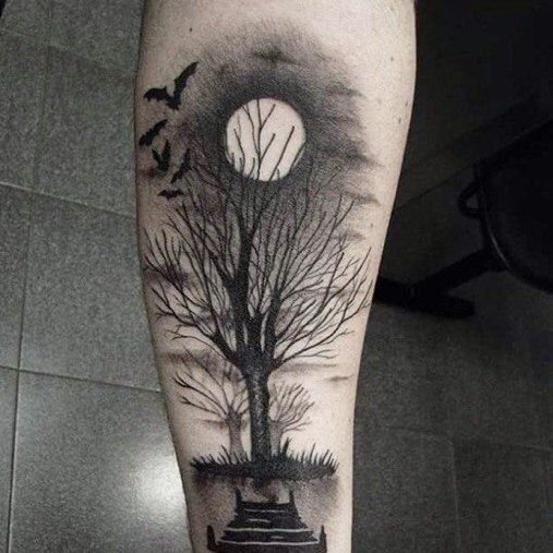 Такое тату дерево очень сложно перепутать с иными деревьями, ведь его изображение имеет особенные черты.