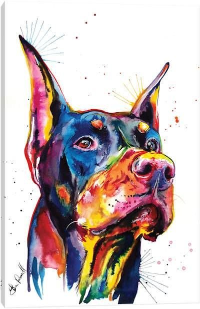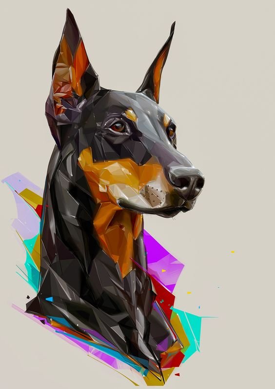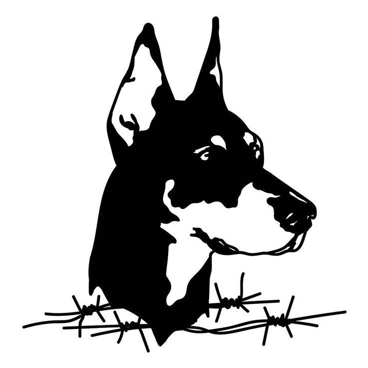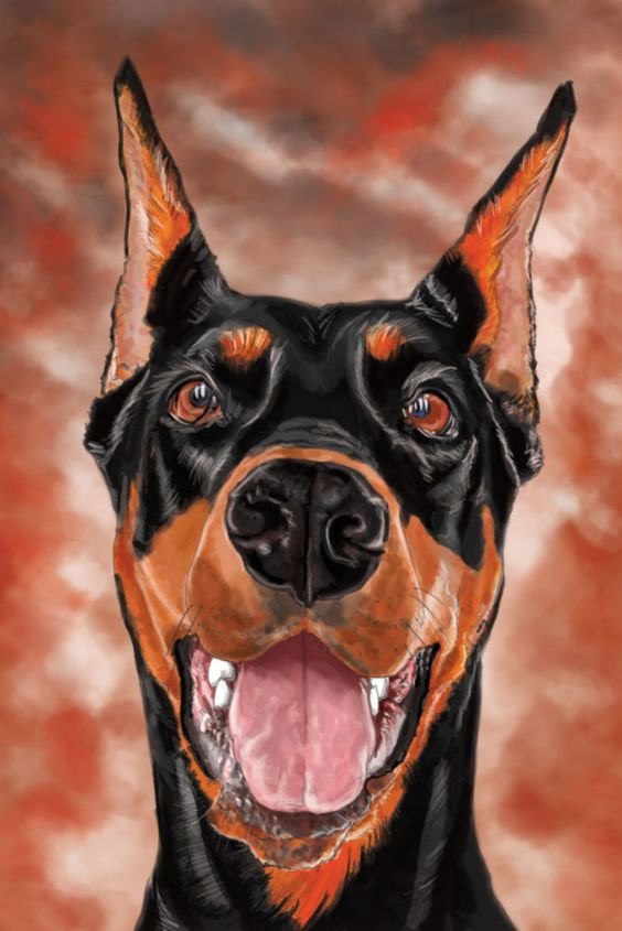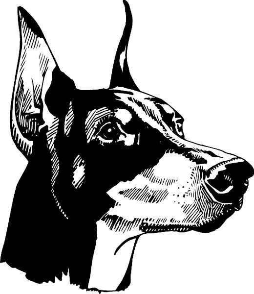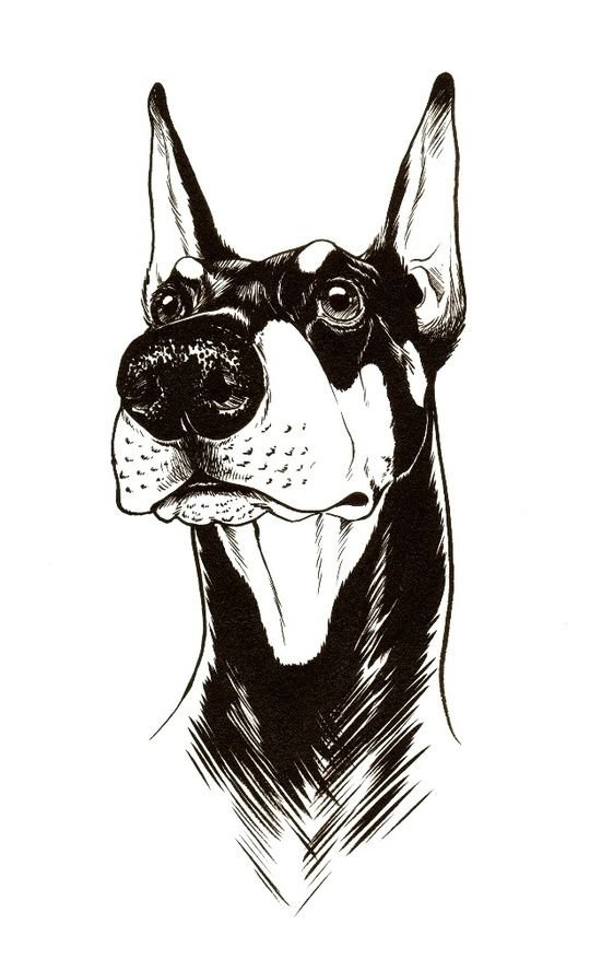 Добермана изображают как в полный рост, так и в половину, либо просто морду питомца.