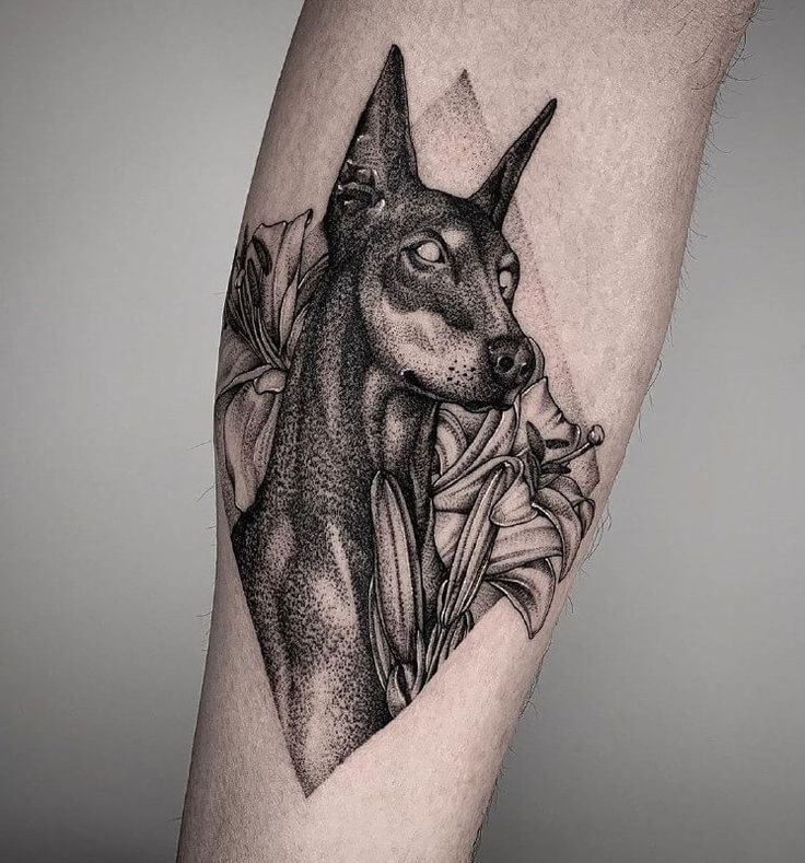 Что касается татуировки с доберманом, обычно ее выбирают люди, которые безумно любят данную породу и связывают себя с ней, либо те, кто просто любит всех животных. Но выбирая изображение добермана, предварительно лучше ознакомиться с его обозначением.