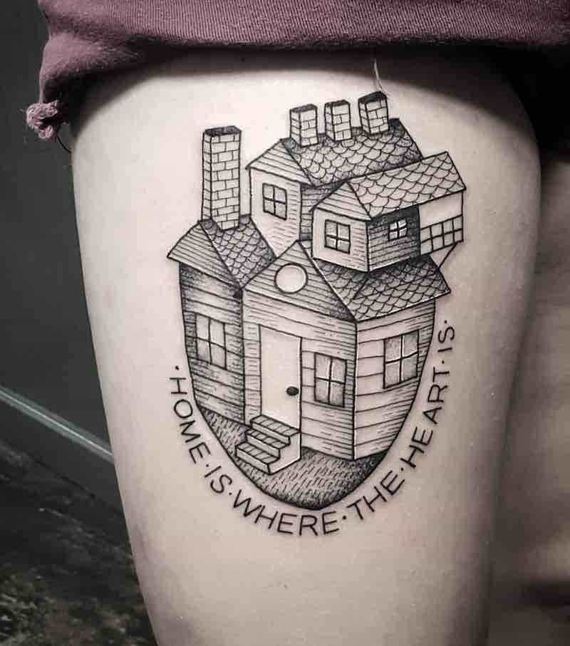 Все мы стремимся попасть как можно скорее домой, к семейному очагу, чтобы почувствовать успокоение и комфорт. О значении же тату дом поговорим ниже. В тату эскизах дом играет немаловажную роль. Миллионы работ уже выполнены и каждая несет в себе ту же однозначность: уют, тепло, комфорт.