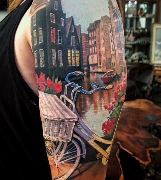 - Городской дом в виде тату может рассказать нам о том, что человек способен сделать уютным любое жилье. Урбанистические работы менее часты и выполняются в нестандартном написании. Это могут быть задворки города или самые красивые здания города, а возможно и мира. Здесь играют роль скульптурные изваяния, а работа может передавать как серость окружающих будней, так и свет в одиноком окне, как символ ожидания, грусти по близкому человеку.