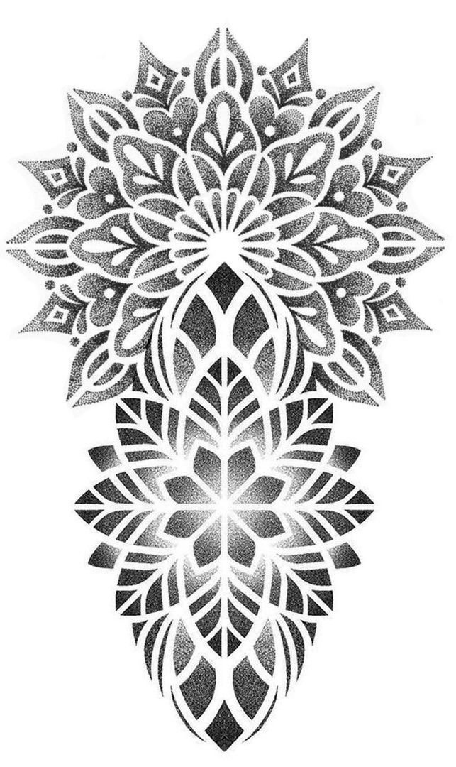 Именно с помощью этих оттенков можно добиться насыщенного контраста и невероятного результата работы. Так же в данном направлении могут преобладать и другие цвета, решение остается за клиентом, каких либо запретов и ограничений нет, но так же большую роль играет опыт мастера, который сможет передать весь контраст изображения. С первого взгляда может показаться что изображения исполнены в стиле дотворк набивать не так уж и сложно. Но это совершенно неверное понятие, работа в стиле дотворк требует особых стараний и сосредоточенности. Здесь важны не только художество и дизайнерские навыки, но еще и хорошо обладать математическим мышлением. В данных работах необходимо с точностью создать идеальную симметрию, в чем во многом помогает мастерам векторная графика.