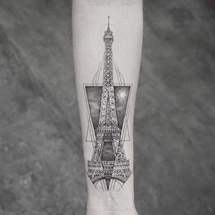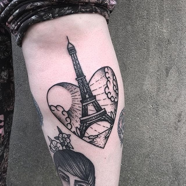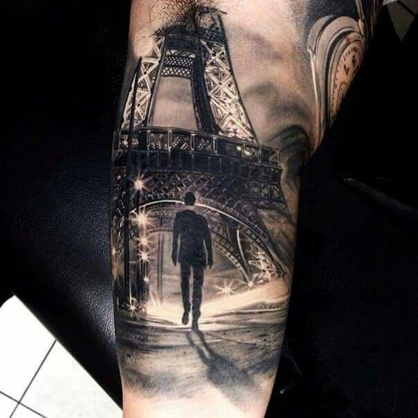 В сфере художественной татуировки довольно часто встречаются изображения различных архитектур, сооружений, памятных мест, среди которых особой популярностью пользуются татуировки с изображением эйфелевой башни.