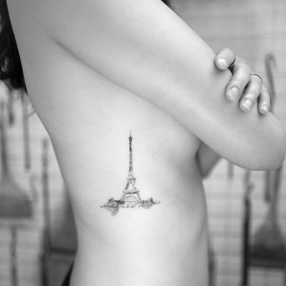 Эйфелева башня прекрасно будет смотреться в любом желаемом стиле, главное - подобрать мастера, который качественно исполнит тату.