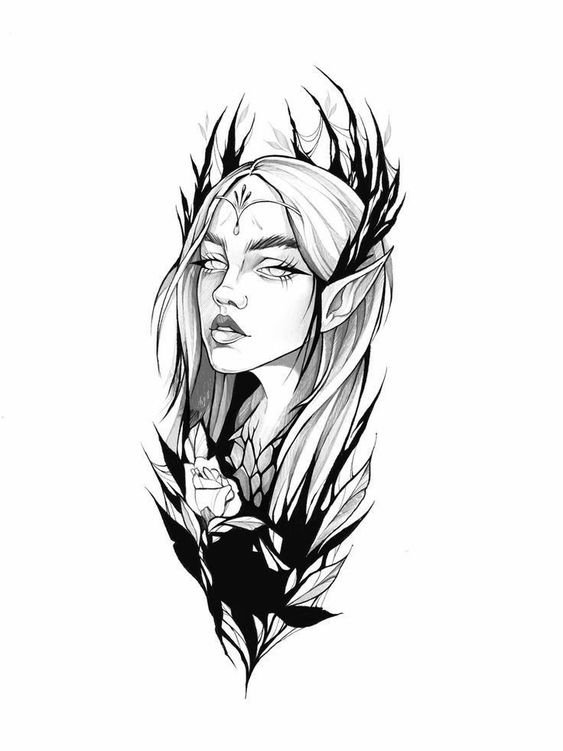 - Темный эльф является противоположностью к образу светлого эльфа. Часто их изображают в стиле Инь-Ян.