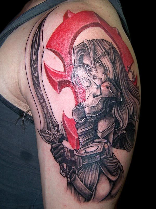 Тату эльфа на мужском теле является знаком мужества, храбрости, упорства.
