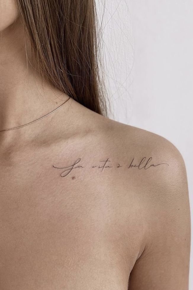- Слова или фразы. Используя тонкие линии, можно создать элегантные и сдержанные фрагменты сценария, значимые цитаты, слова или словосочетания. Техника файн лайн идеально сочетается с текстом.