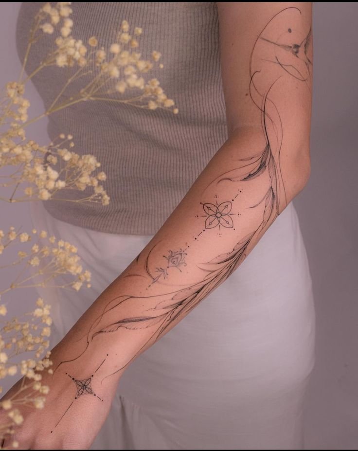 Татуировки в стиле файн лайн - это красивая, элегантная и содержательная форма боди-арта.