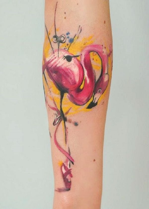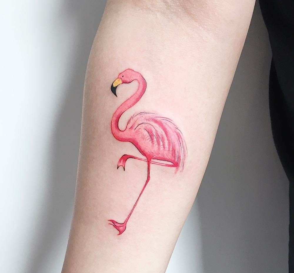 Нательное изображение фламинго популярно для женского пола, ведь основные характеристики этого тату эскиза это: