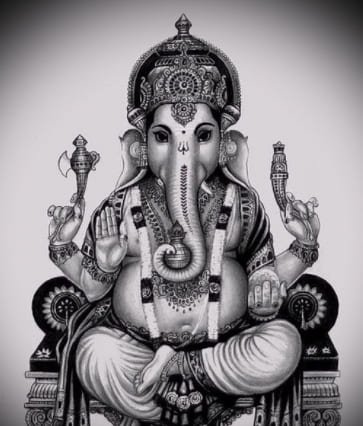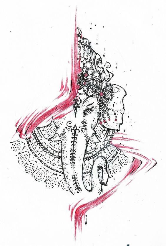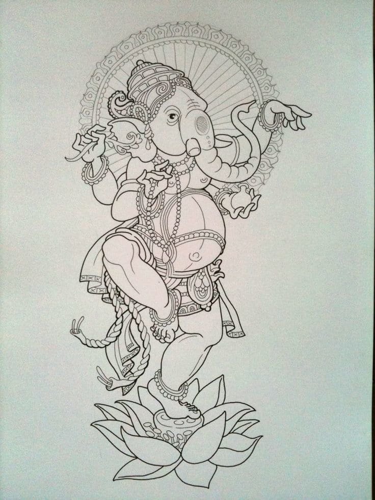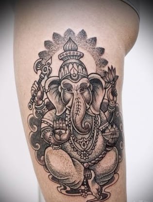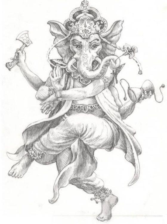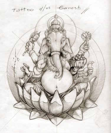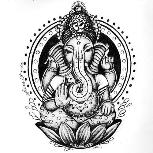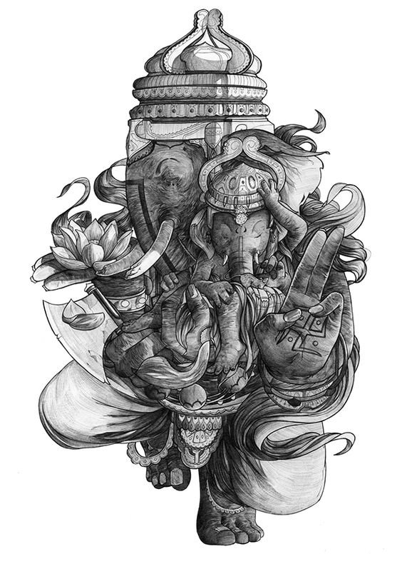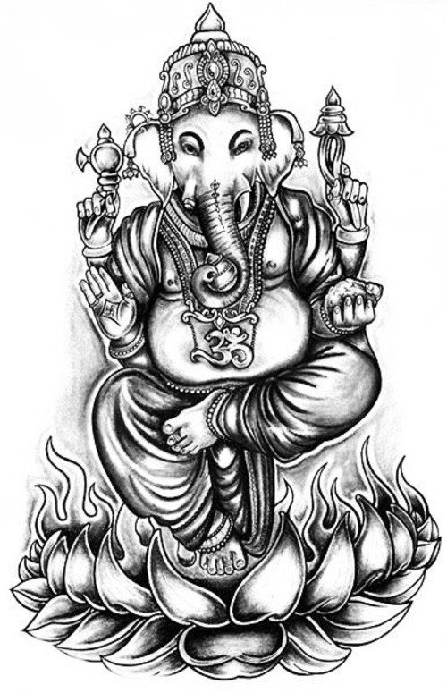 Тату-эскиз Ганеши несет в себе массу обозначений, ведь особой трактовкой обладает каждая часть его тела: