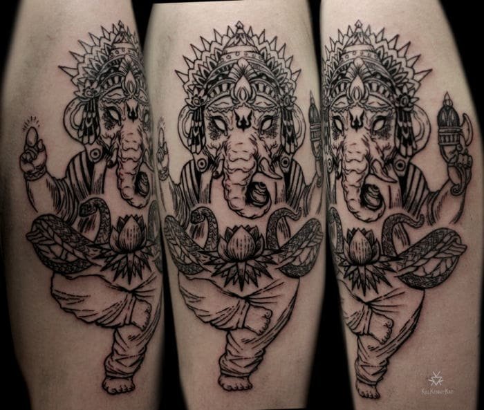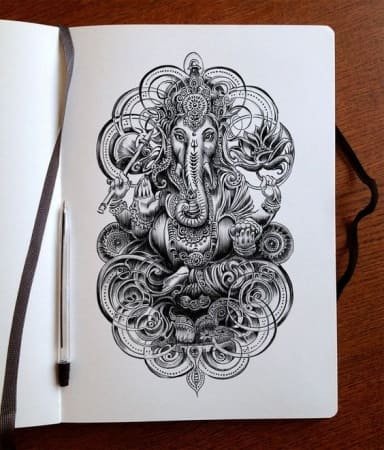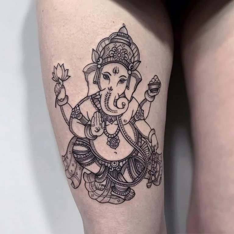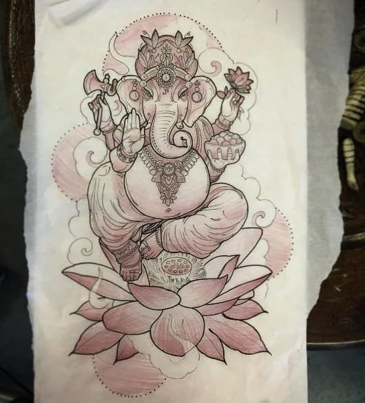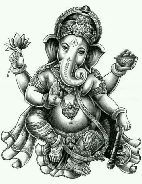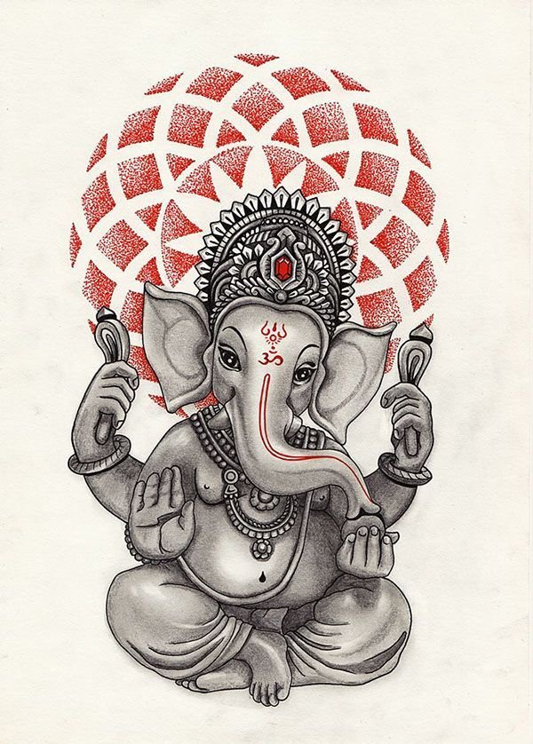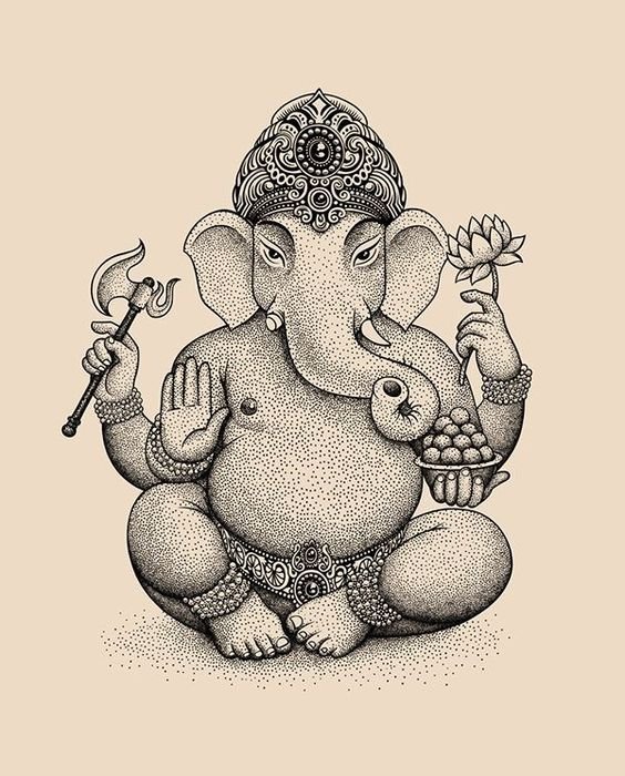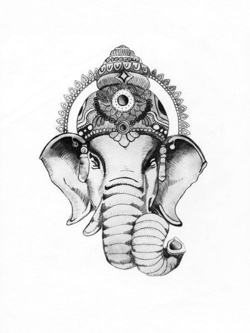 Тату-эскиз Ганеши несет в себе массу обозначений, ведь особой трактовкой обладает каждая часть его тела: