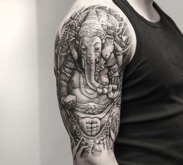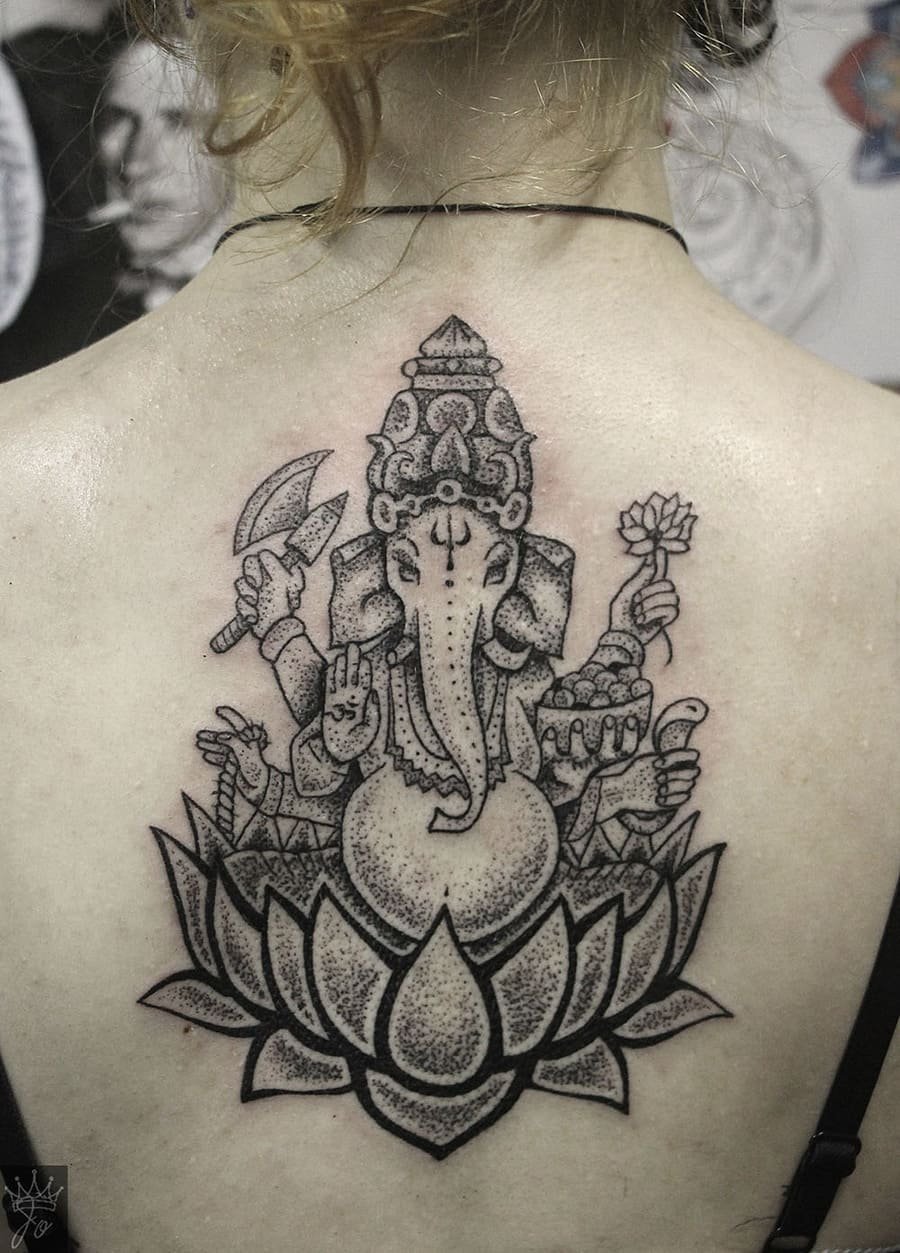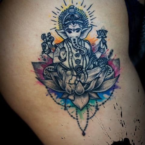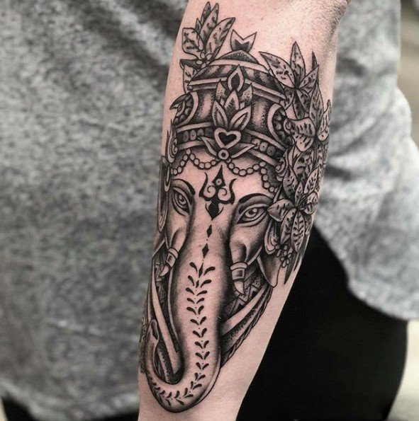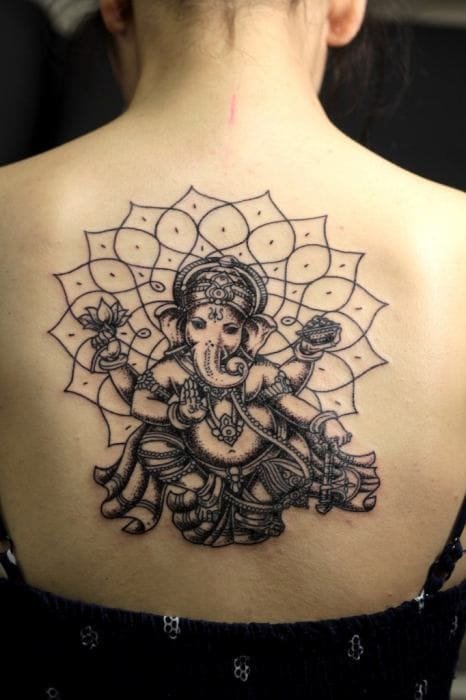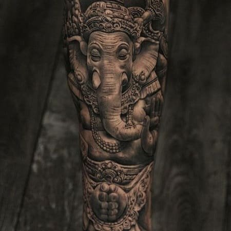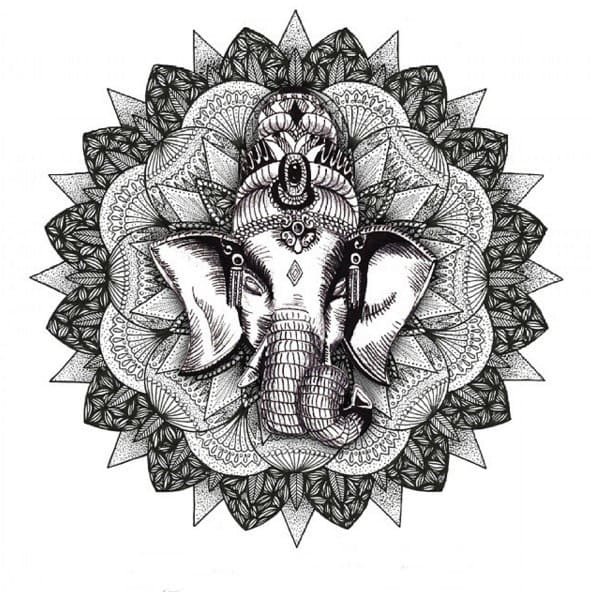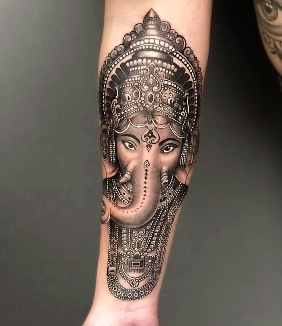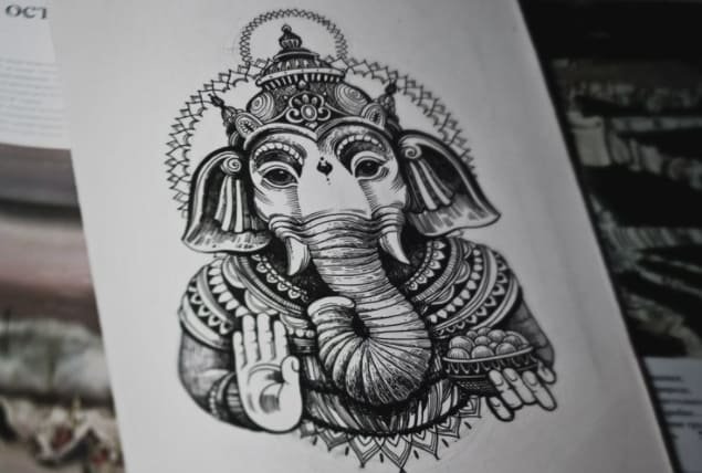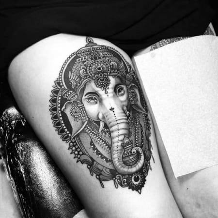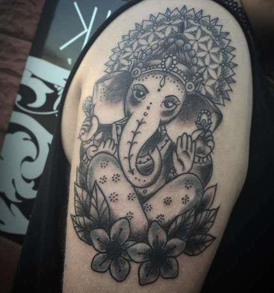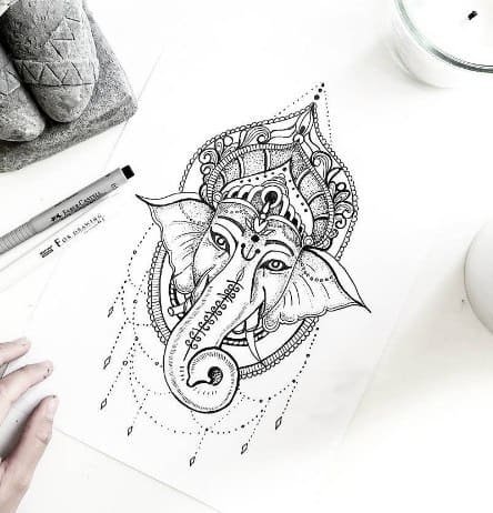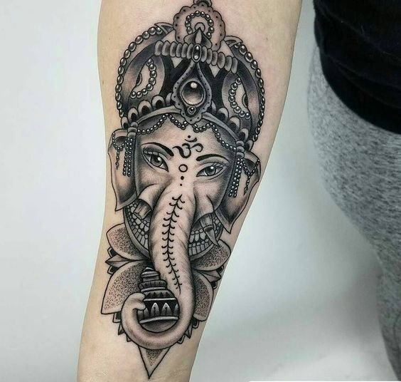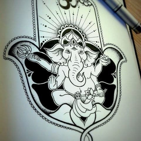 Многие люди считают что нательный рисунок божества с головой слона привлекает положительную энергию в жизнь человека.