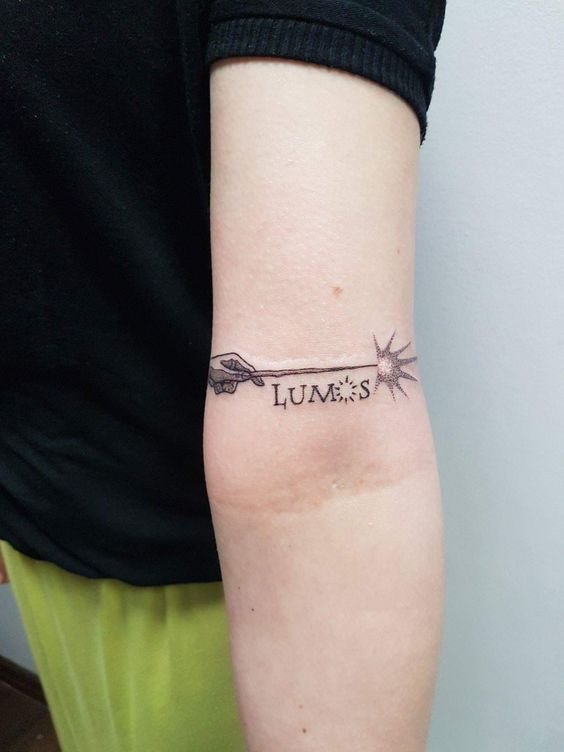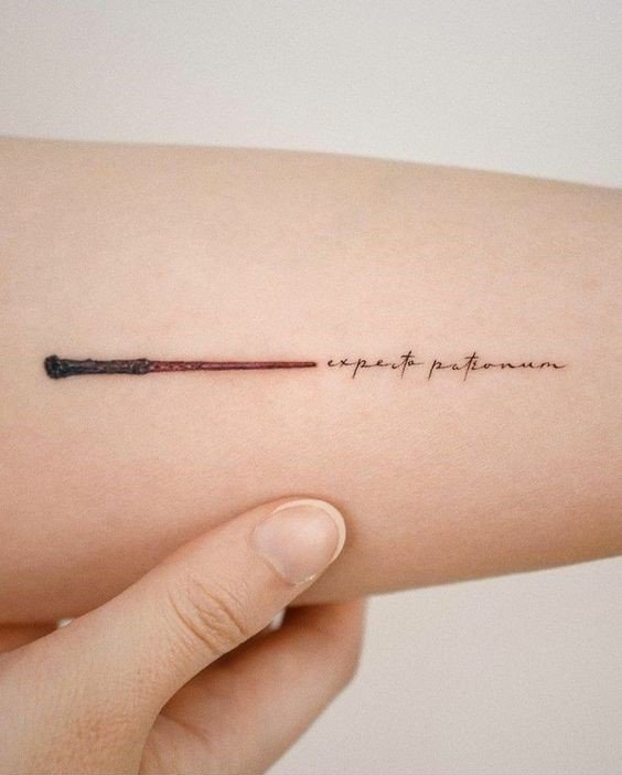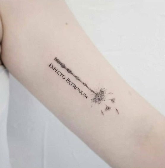 Особенно эффектно смотрятся тату с цитатами, где текст передаёт личное отношение к магическому миру.