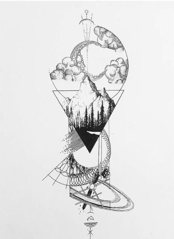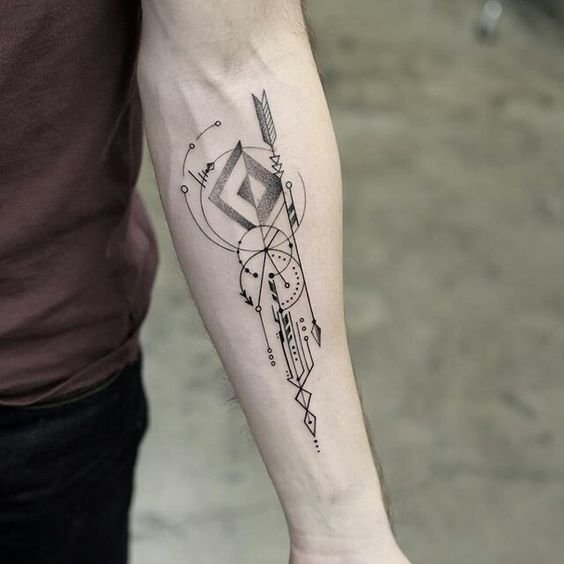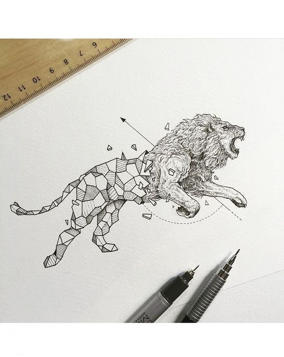 Некоторые люди не понимают татуировок выполненных в геометрическом стиле, так как им кажется, что различные линии и чертежи совсем неинтересны, что в них отсутствует красота и полет фантазии. Это весьма ошибочное мнение, настоящий опытный мастер из простых геометрических линий может сотворить целое произведение искусства, которое будет удивлять всех окружающих своей уникальной игрой линий, вымыслом и точностью мастера. В таких изображениях так же существует сюжетная линия, которая состоит из обычных фигур геометрии: линий (как прямых так и ломаных), конусов, шаров, треугольников, многоугольников, кубов и так далее. Одним из самых популярных сюжетов является линейный орнамент - меандр, но это можно отнести к простым вариантам. Тату-специалисты могут с помощью геометрического стиля изобразить любое изображение, это может быть и изображение цветка, либо силуэт девушки. Высококвалифицированный специалист может исполнить работу любой сложности, начиная от насекомого, и заканчивая масштабным изображением многоэтажного здания. Татуировки данного стиля пользуются широким спросом и у мужчин, и у женщин, при этом ограничений в выборе места для нанесения рисунка абсолютно нет. Геометрические татуировки могут быть масштабных работ и разной сложности, все зависит от пожеланий клиен
