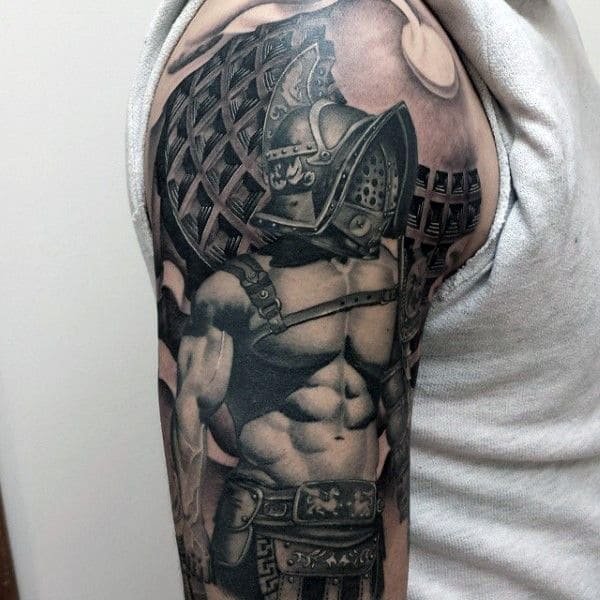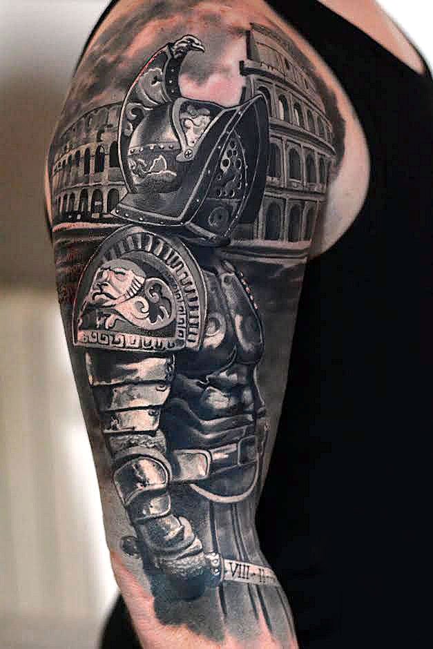 Изображается рисунок гладиатора на предплечье, груди либо спине, таким образом мужчина демонстрирует свою силу и храбрость.