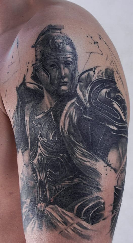 Гладиатор может изображаться как в черно-белом варианте, так и во всех реалистичных красках. Главное - обратиться к опытному специалисту, который выполнит гладиатора на Вашем теле во всей красе.
