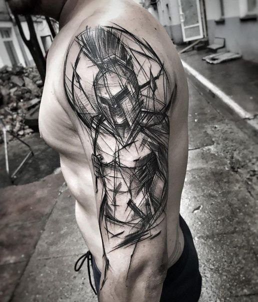 Тату-эскиз гладиатора относиться к мужским татуировкам, девушки, как правило, не выбирают эскизы подобного рода для татуировки.