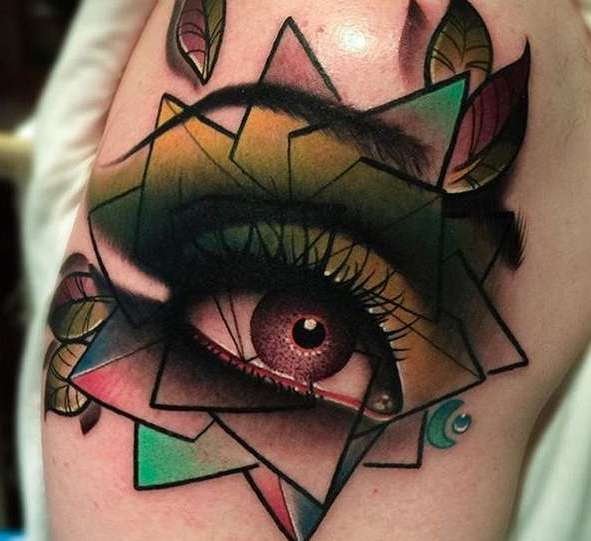 Татуировка с изображением глаза всегда смотрится довольно необычно, очень оригинально и интересно, порой даже загадочно и устрашающе.