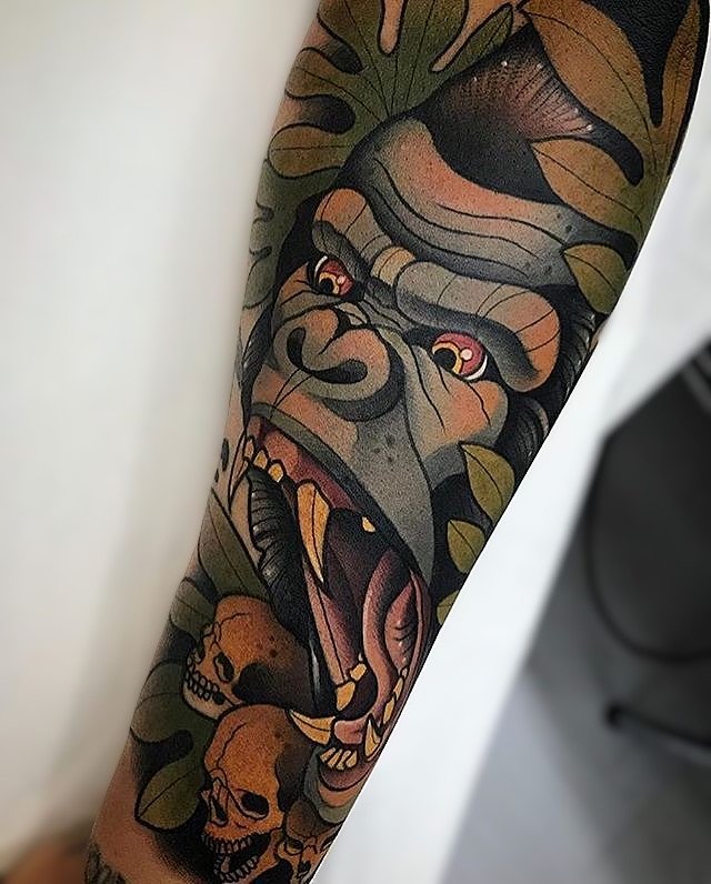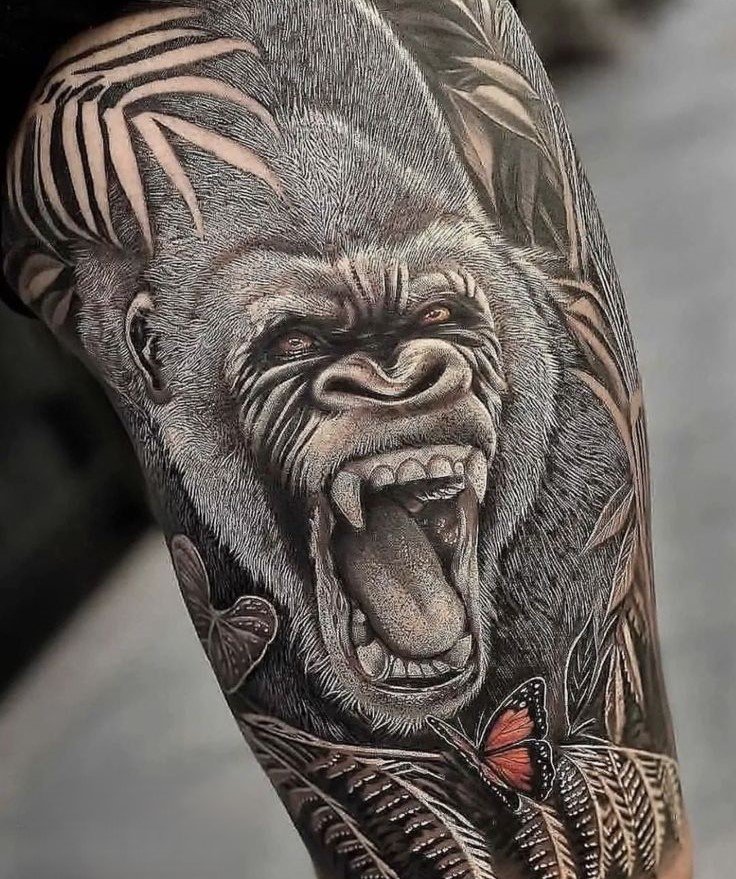 Так же большой популярностью пользуется татуировка гориллы, которая изображена на теле у известного ирландского бойца с известным именем Конор Макгрегор.