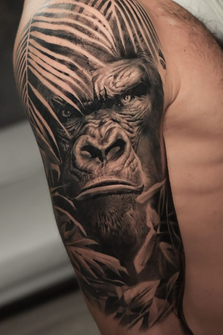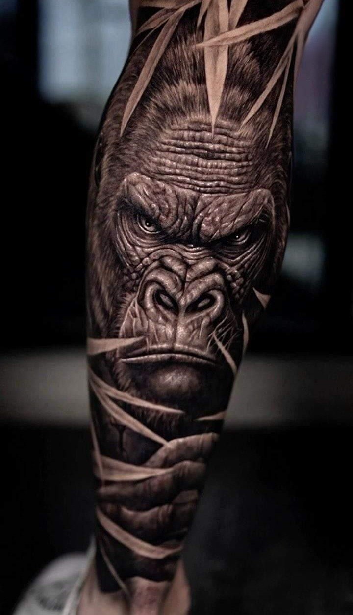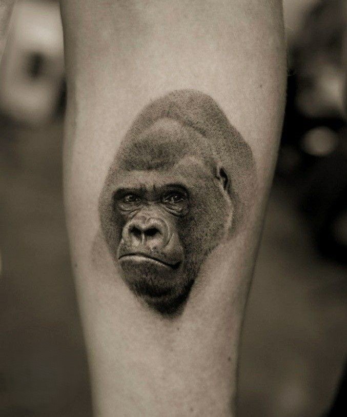- Миролюбивое состояние гориллы на изображении демонстрирует мудрость обладателя тату, а так же высокие интеллектуальные способности;