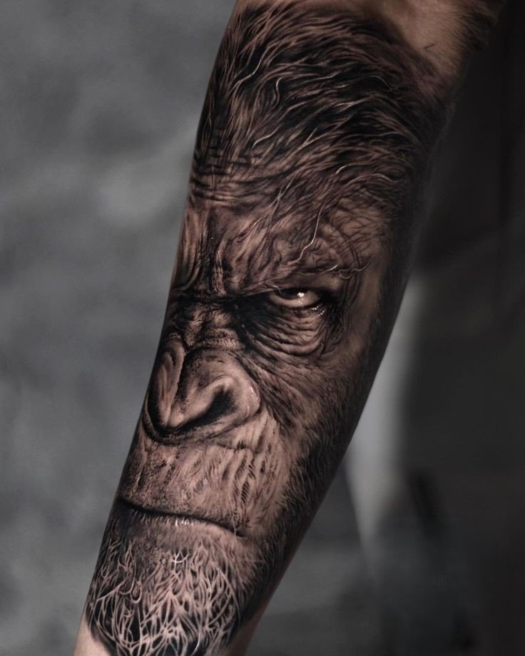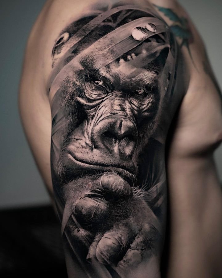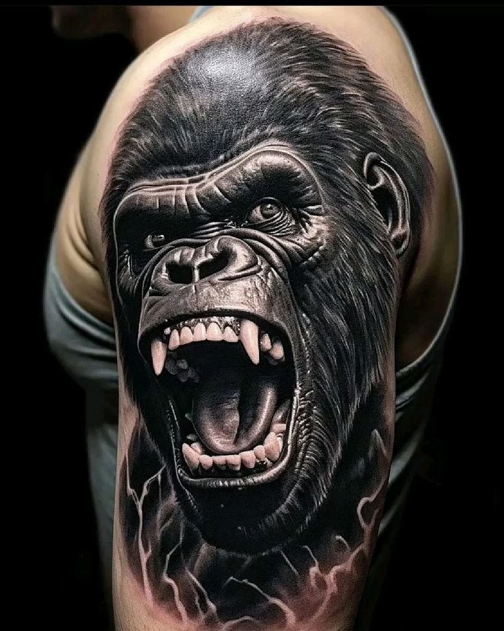 Наносить на свое тело изображения животных люди начали еще в древние времена. Люди чтили животных, многим из них поклонялись, сооружая в их честь тотемы. Изображение на теле тотемного животного считалось священным, люди верили что оно придает им силу и везение. Со временем первоначальные обозначения нательных рисунков частично изменились, но сами татуировки с животным миром все так же популярны. Одной из самых популярных татуировок животного мира является изображение гориллы. Изображение данного примата несет в себе разнообразные трактовки, так как каждый народ по своему описывает горилл.