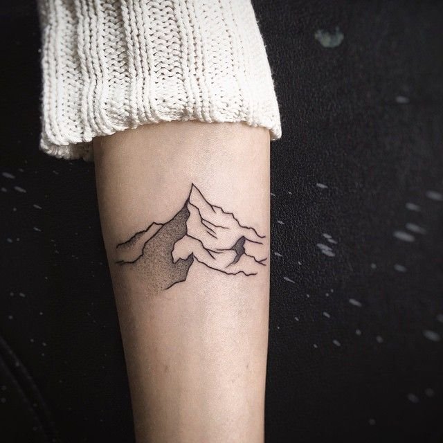 - Так трактуются пейзажные изображения гор. Но данные татуировки встречаются редко, так как это очень долгая и трудоемкая работа, не каждый клиент и мастер в силах выдержать такую нагрузку. Поэтому для тату гор выбирают, как правило, более упрощенные варианты изображений.