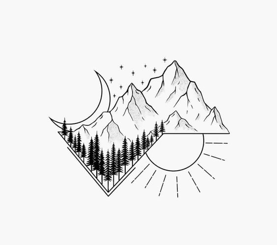 Одинаково оригинально будут выглядеть горы, выполнены в стиле геометрии либо акварели. Изображения гор наносят как на широкие части тела (спина, живот, плече), так и на менее объемные, к примеру, на руки либо шею. Горы на татуировке могут быть дополнены различными элементами. К примеру, горы можно дополнить изображением орла, либо других птиц или животных. Часто изображение гор дополняют морскими волнами, густыми деревьями либо месяцем. Все зависит от полета Вашей фантазии, Вашего желания и умения мастера.