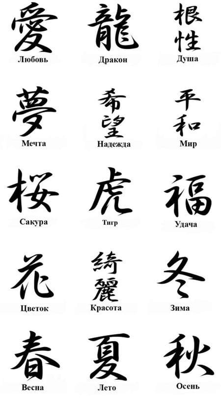 В сфере художественной татуировки, как правило, изображаются китайские и японские иероглифы. Однако, стоит так же упомянуть, что существуют еще корейские и вьетнамские символы.