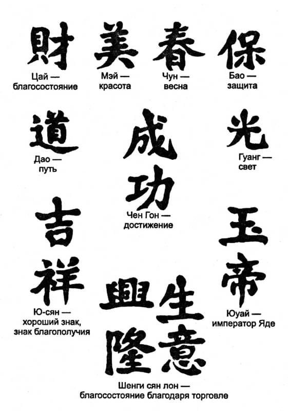 Довольно часто иероглифы используют в качестве дополнительного элемента к основной картинке, к примеру к рисунку дракона, либо знака Инь-Ян.
