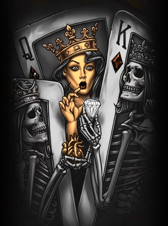В данной статье, мы рассмотрим татуировки с изображением игральных карт. Тату-эскизы игральных карт смотрятся очень интересно, это довольно популярная тема для тату, пользующаяся широким спросом как у парней, так и у девушек. Что обозначают тату с игральными картами, Вы узнаете в нашей статье.