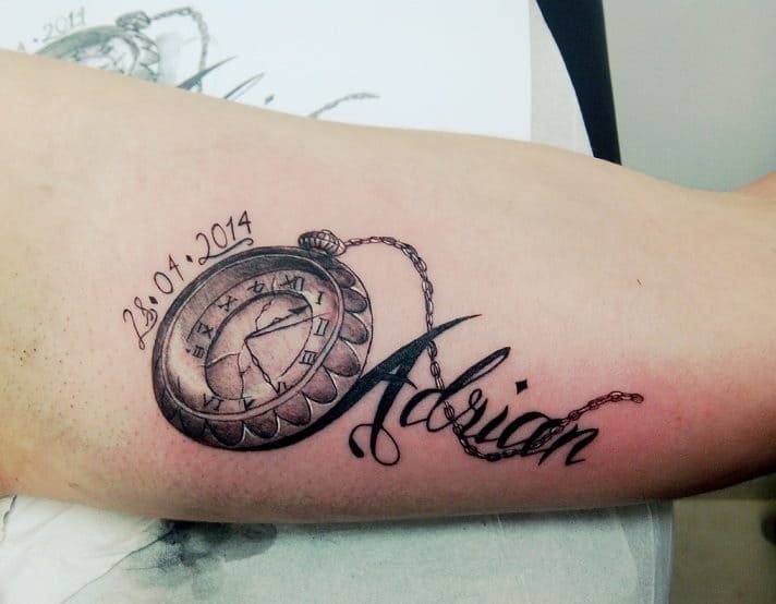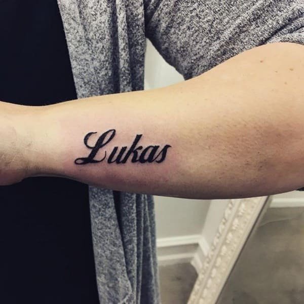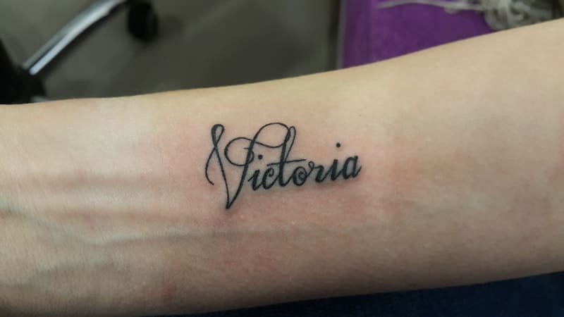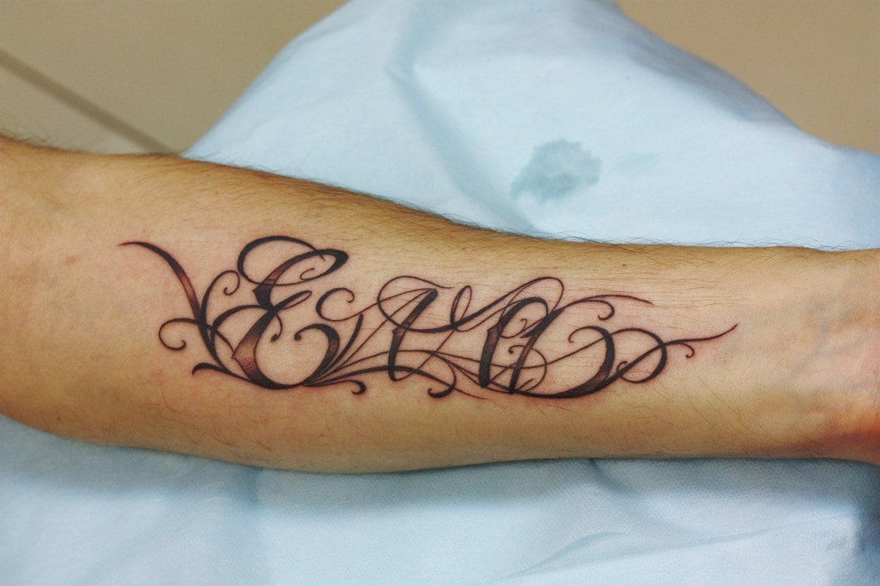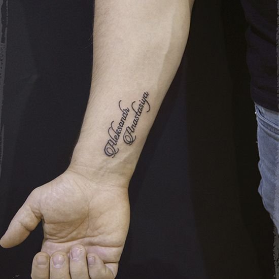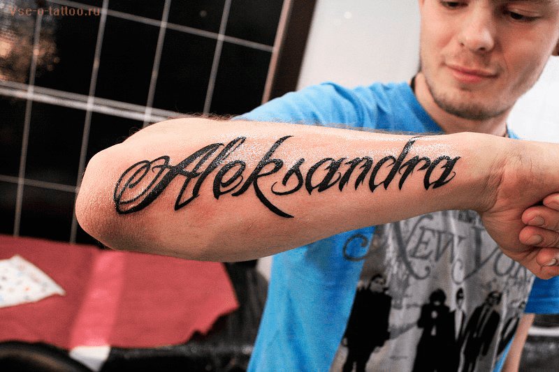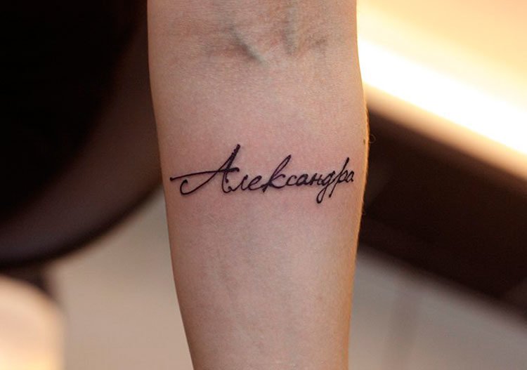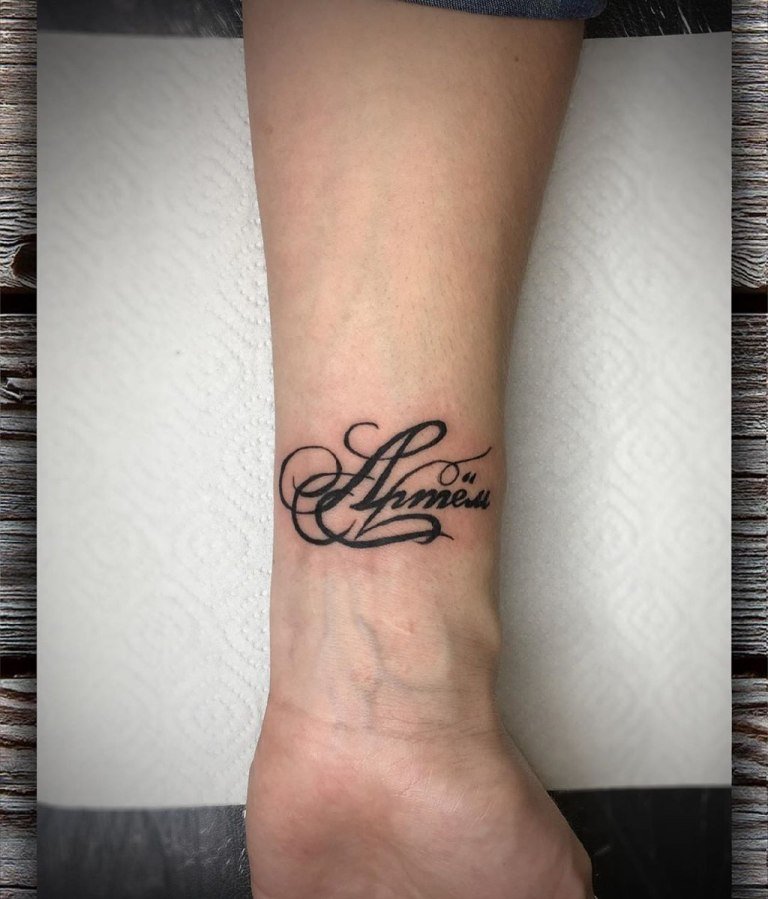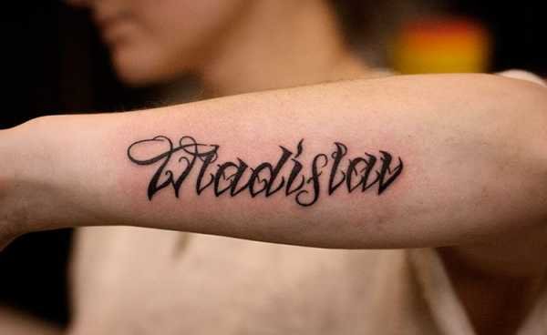 Выбирая участок на теле, для имени чаще всего используют руку, а именно участок от запястья к локтю. Пишется имя как в горизонтальном, так и в вертикальном положении, все зависит от Ваших предпочтений.