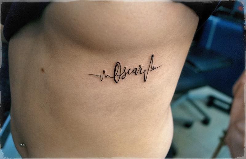 - Эскиз имя выбирают люди исходя из эмоциональных побуждений. К примеру, это может быть татуировка с именем ребенка, любимого человека, имена родителей, братьев или сестер, любимого актера, музыканта и так далее. Таким образом человек выражает свои теплые чувства к тому, чье имя изображено у него на теле.