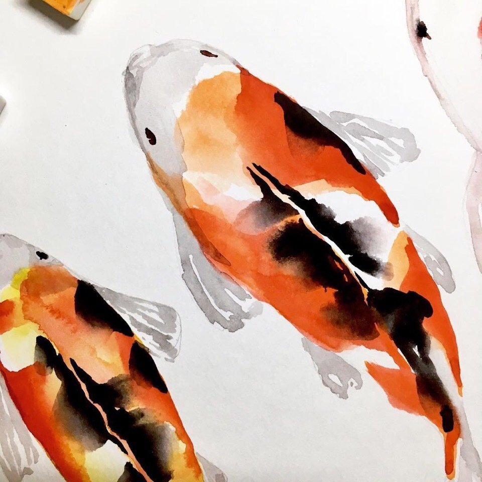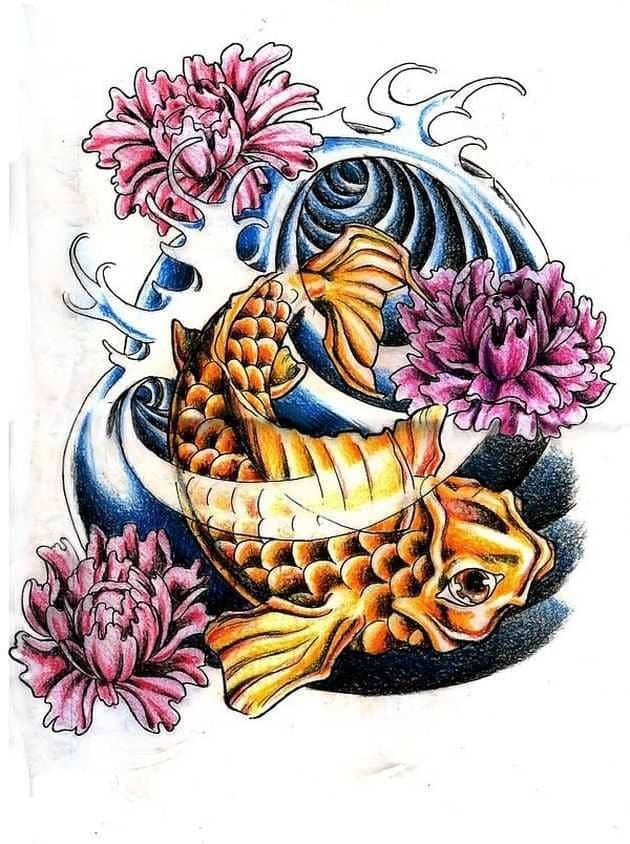 Карпов кои можно изображать в разных стилях, таких как реализм, дотворк, нео-традишнл, акварель, а также добавлять элементы, как волны, лилии, водоемы.