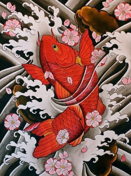 В китайской и японской культурах этот образ ассоциируется с глубокой философией, где рыбка представляет собой идею преодоления трудностей. Легенда о цветной рыбе, которая, преодолев водопад, превращается в дракона, символизирует трудности, стоящие на пути к цели, и способность человека их преодолевать.