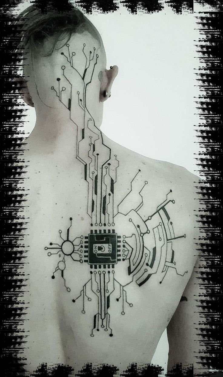 Стиль татуировок киберпанк – порождение и естественное продолжение одноимённого направления научно-фантастической литературы, получившего популярность в конце 80-х годов прошлого столетия.