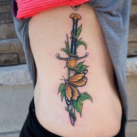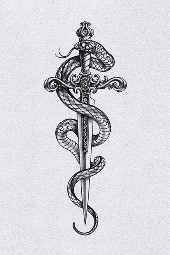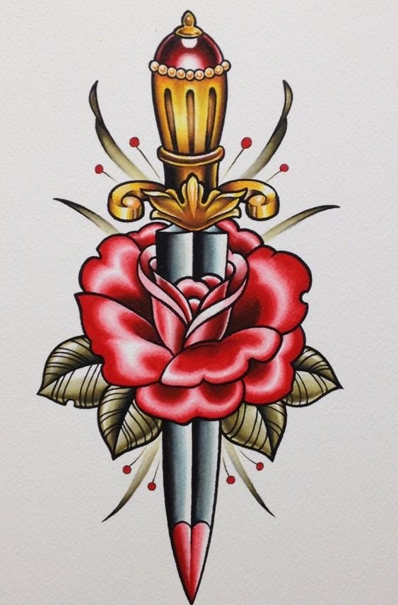 - Тату кинжала, который пронизывает тело, говорит о том, что обладатель данного изображения устал от того насколько несправедлив мир.