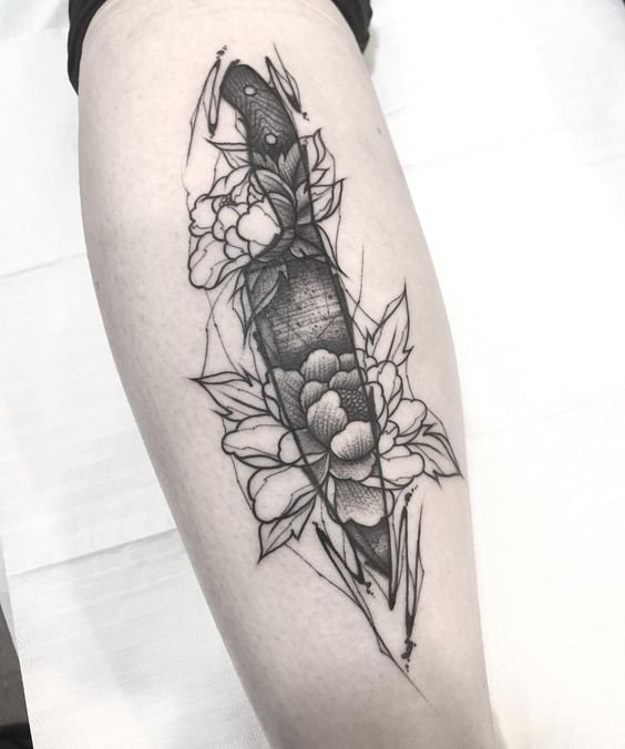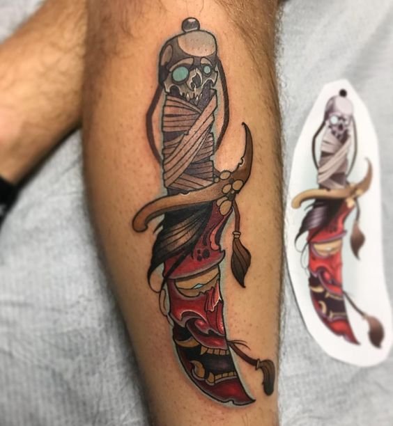 Тату кинжала обычно разбавлена различными деталями, крайне редко орудие изображают как полноценную татуировку.