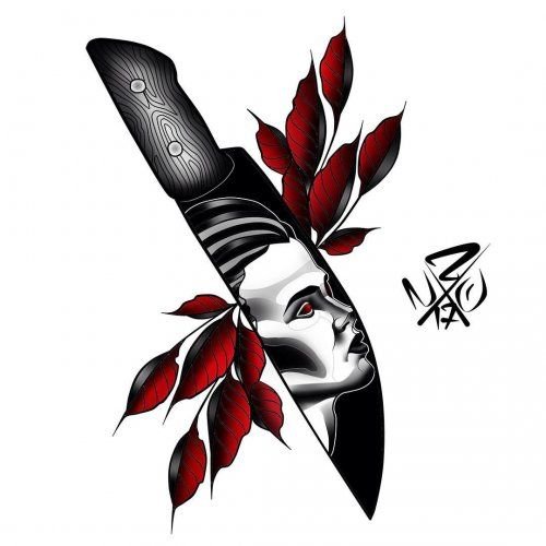 Что касается девушек, то такой эскиз прекрасная половина выбирают для тату крайне редко. Обычно женская половина в тату с кинжалом вкладывают знак предательства, а также стойкость духа.