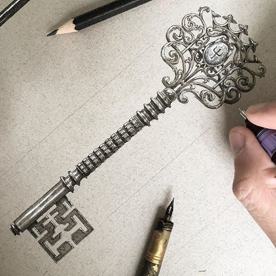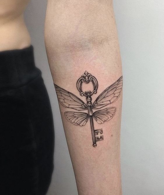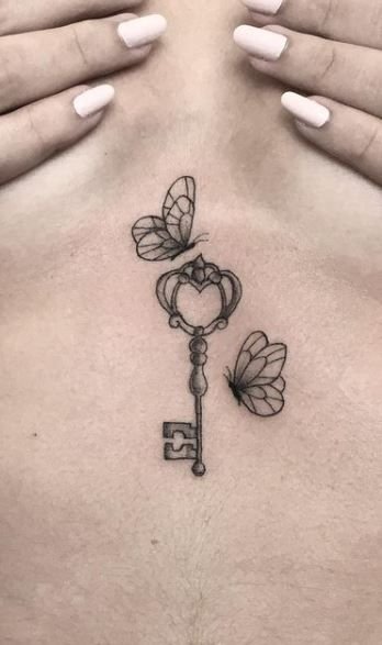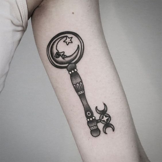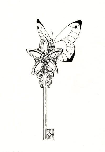 При этом, ключ несет в себе некую таинственность, ведь окружающим становиться любопытно, что же данный ключ способен открыть. Татуировка может состоять из изображения одного ключа, либо с дополнительными элементами. Ключ может быть завязан красивой лентой, либо быть в клюве или когтях птицы. Часто изображают ключ, который держит в своих цепких когтях сова. Так же ключ может изображаться в паре с замком, либо замочной скважиной. Прекрасно дополняет изображение ключа красивая надпись.