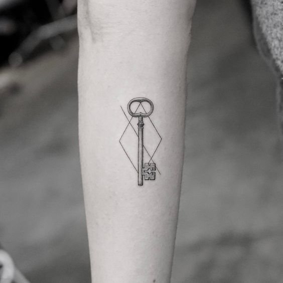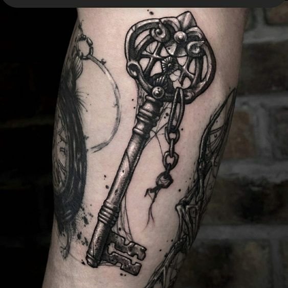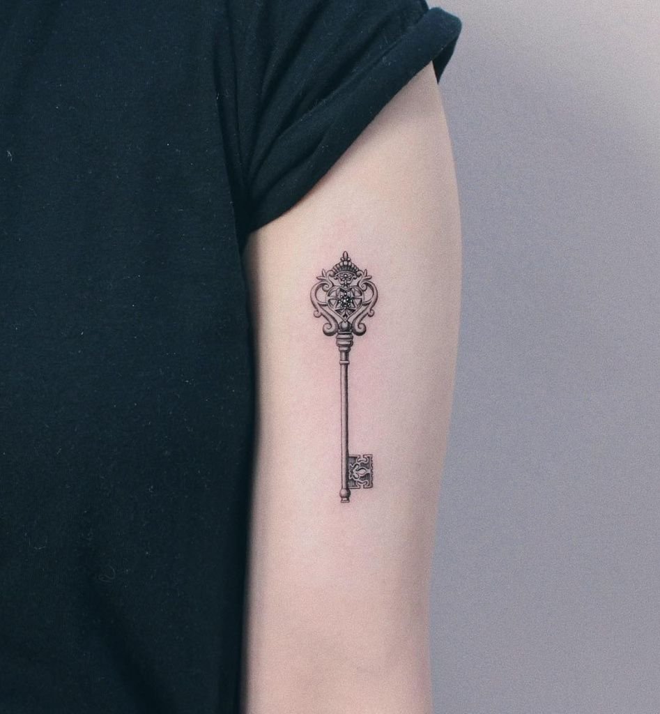Татуировка с изображением ключа всегда притягивает взгляд окружающих людей.