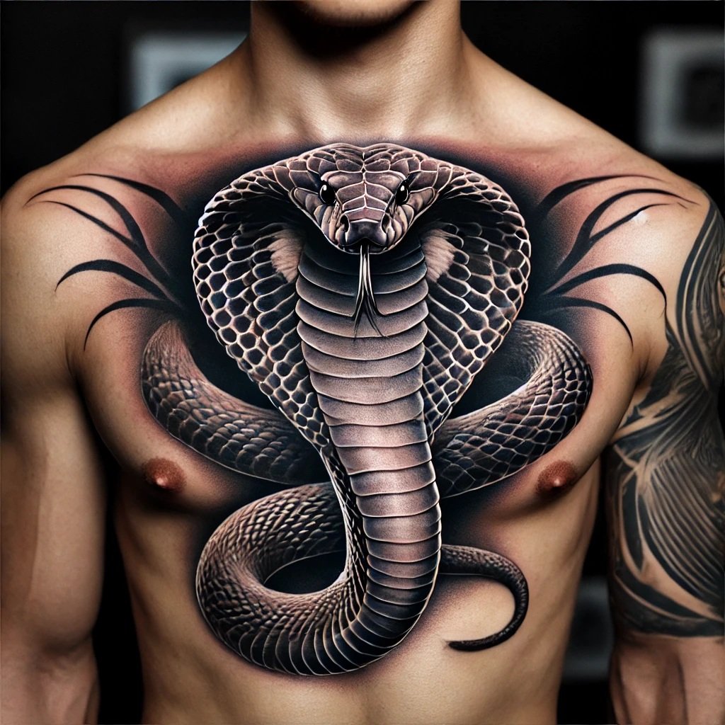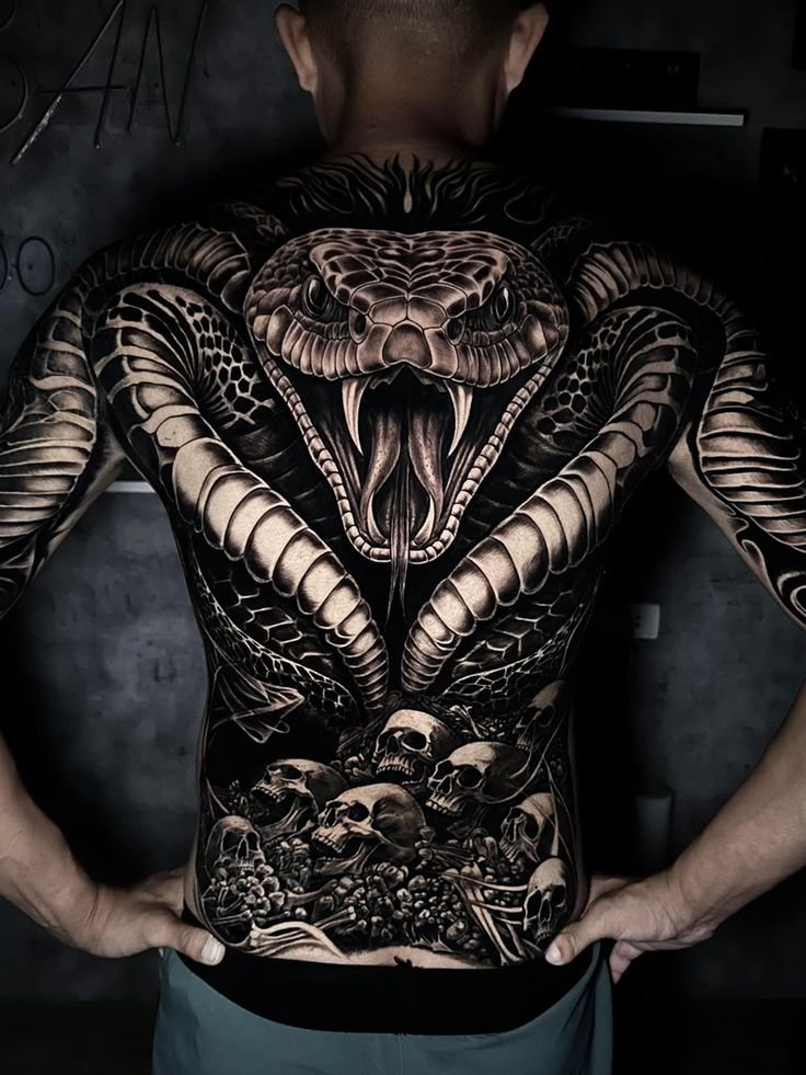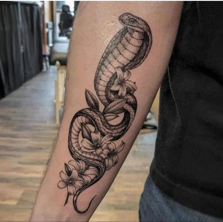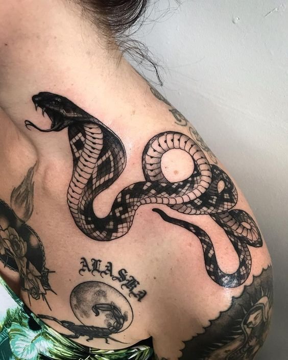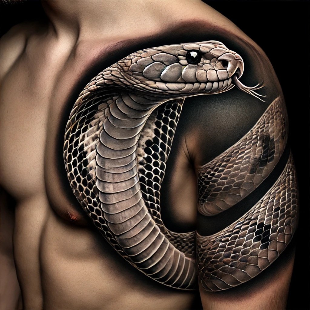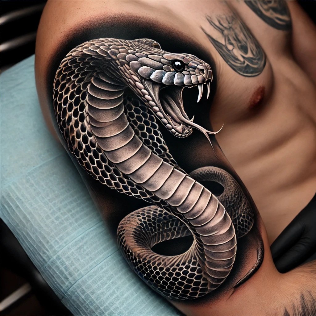 Образ кобры в тату-культуре символизирует мощь, решительность и контроль над ситуацией.