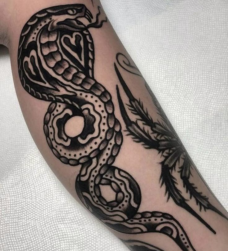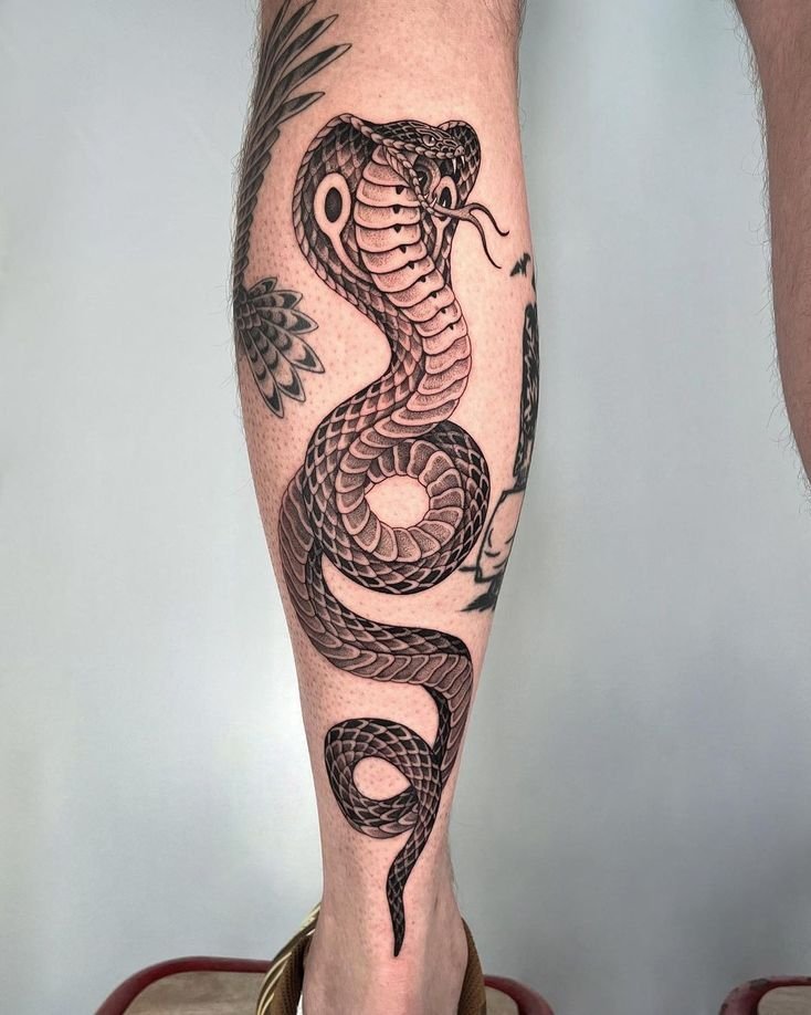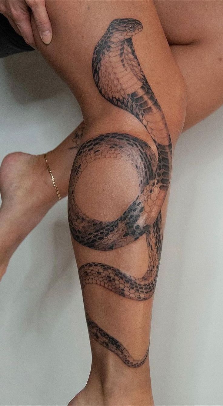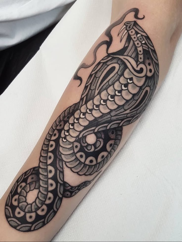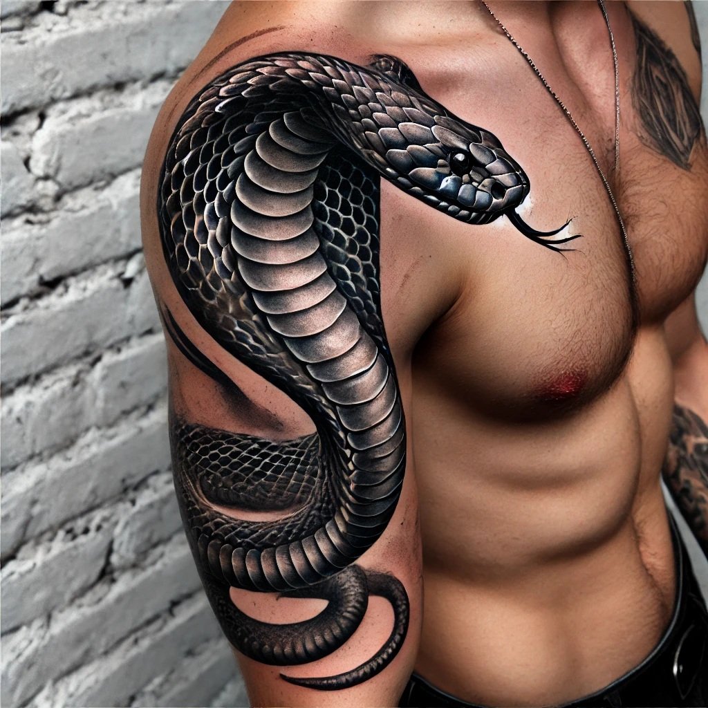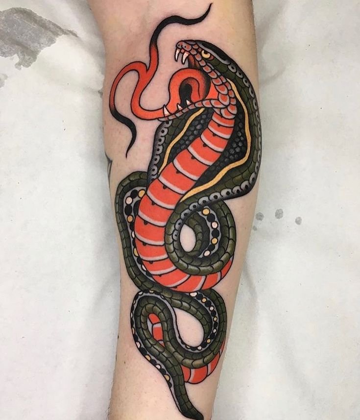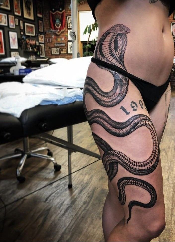 Образ кобры в тату-культуре символизирует мощь, решительность и контроль над ситуацией.