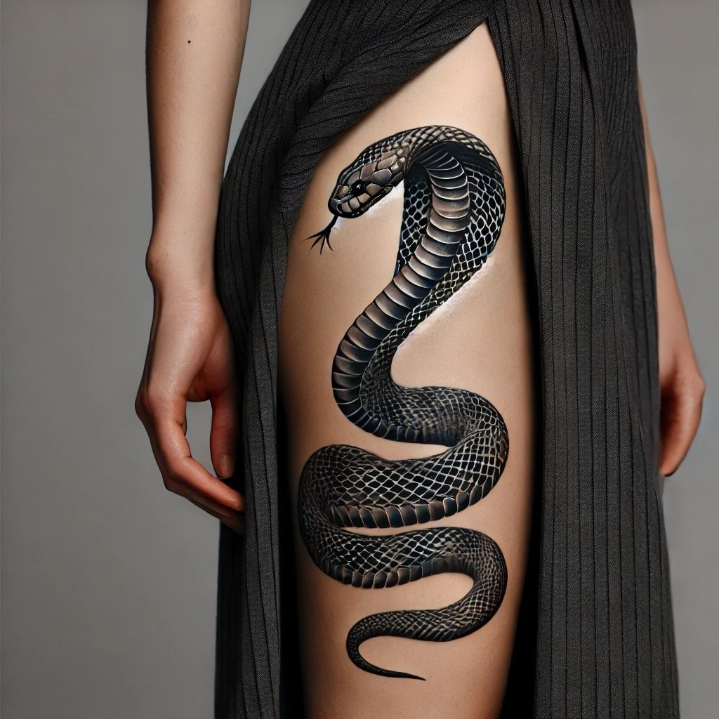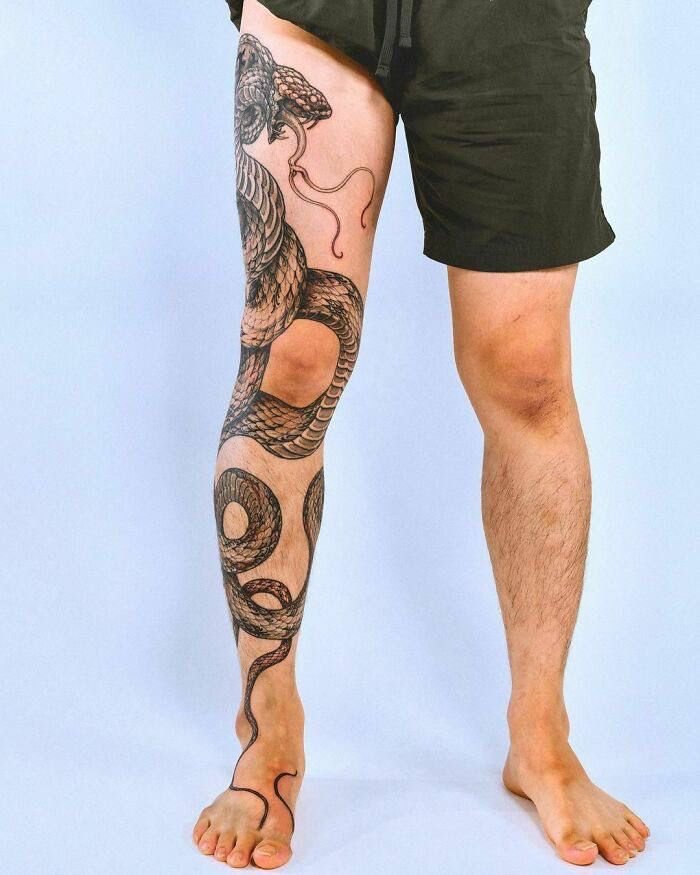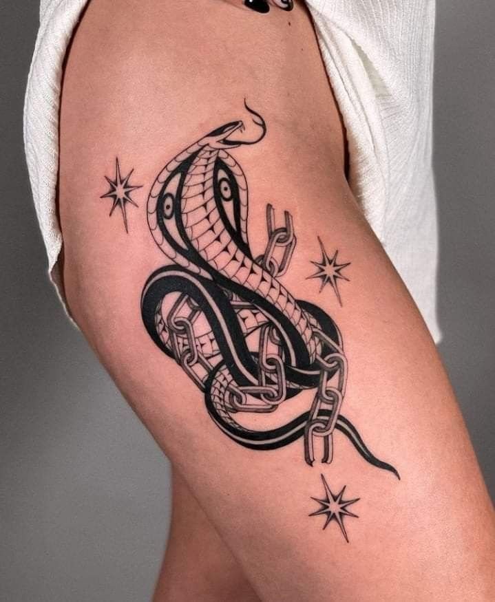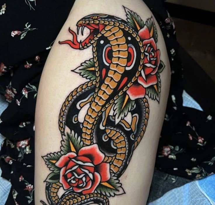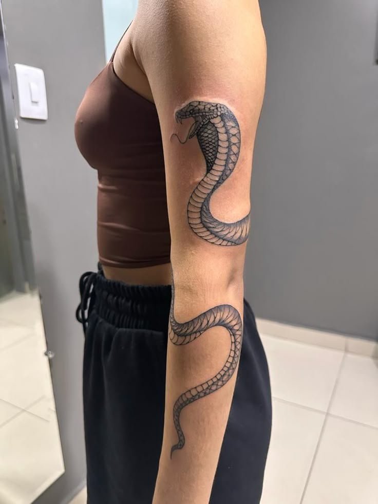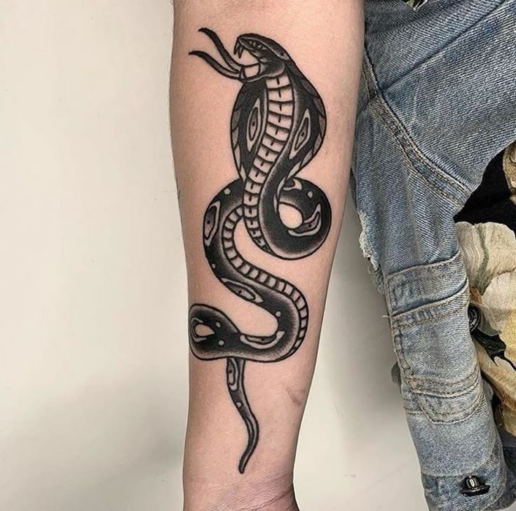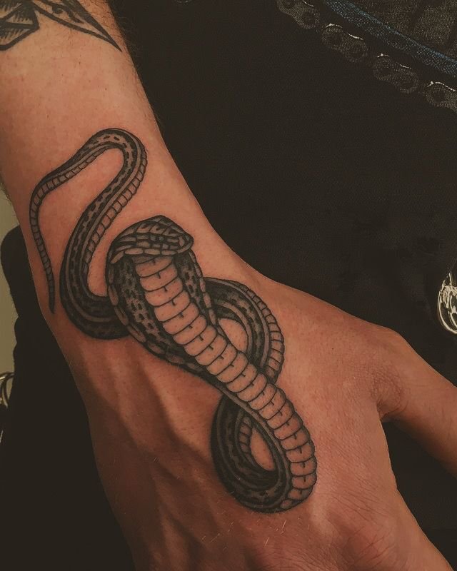 Образ кобры в тату-культуре символизирует мощь, решительность и контроль над ситуацией.