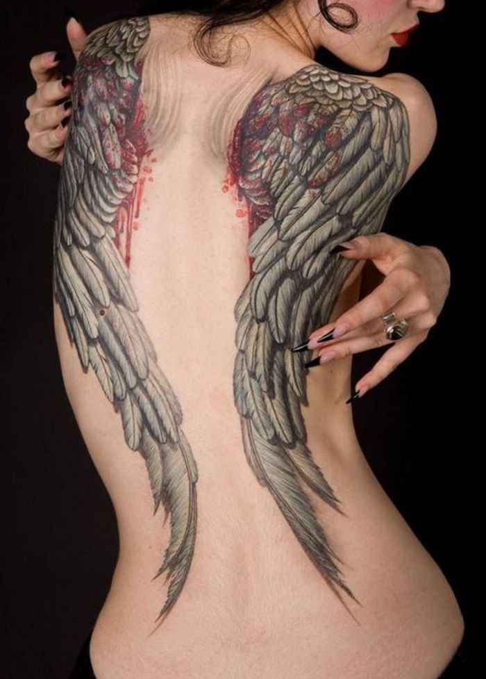 Девушкам больше по душе изящные, небольшого размера крылья, которые подчеркивают красивые изгибы тела. Варианті окраски крыльев могут быть самыми разными. Тату может быть выполнено в одном цвете, а может играть яркими красками. Очень красочно выглядят крылья бабочки, выполнены в ярких, сочных цветах. Женщины более креативны в местах для набивания тату. На женском теле крылья могут изображаться не только на спине, но и над/под грудью, на щиколотках, запястьях, либо же на пояснице.