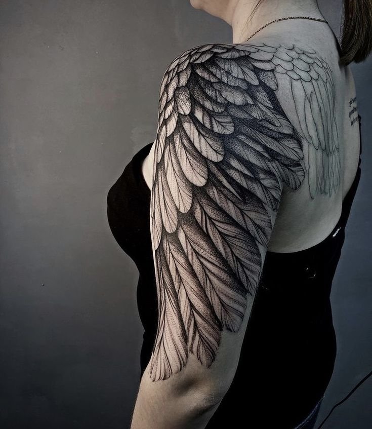 Тату крыльев сегодня наполнены немного иным обозначением, важную роль играют какие именно крылья выбраны для эскиза.