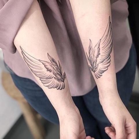 Эскиз крыльев является одним из самых популярных изображений в сфере тату.