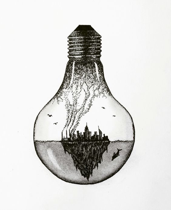 Имеются работы, выполненные больше для удовольствия, где в лампе расположен целый мир: это может быть дно океана, пустыня, город или провинция, даже целая планета. В лампочке может быть заключена вселенная, подобные логотипы используются поборниками защиты природы.