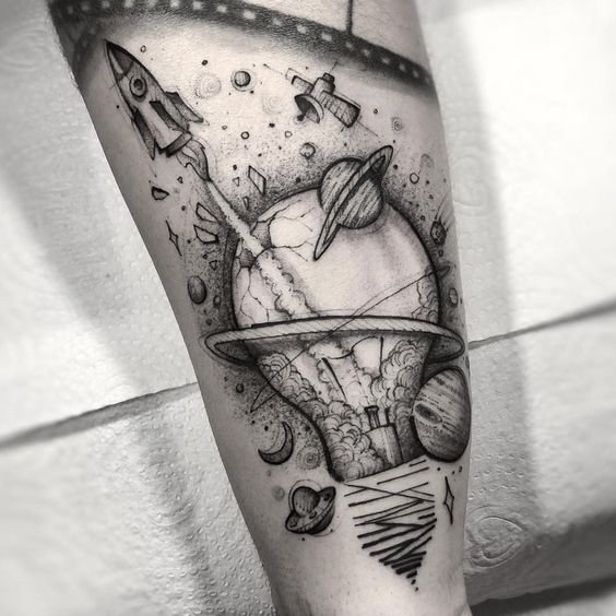 Она будет ярким примером красивого и стильного эскиза на не менее стильном и ярком человеке. Размер работы можно подобрать под то место, куда Вы желаете нанести татуировку.
