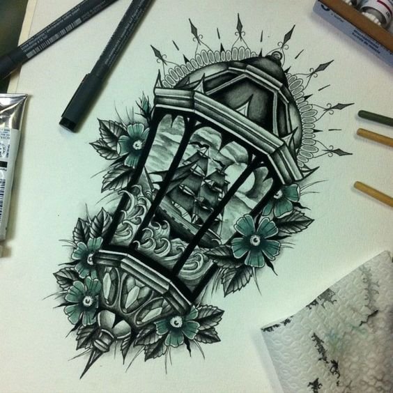 Удачным будет выбор кисти, как зоны для нанесения, предплечья, где работа будет заметна и ярко выражена. Кстати, эскиз лампа можно доработать и другими элементами, которые заинтересуют: надпись, подчеркивающая Ваш взгляд на значение тату, оформление самой лампы в средневековом стиле. Если это старинная средневековая лампа, она может нести значение ожидания, одиночества, грусти по родному человеку. Такая работа будет удивительным решением для романтика. Сама лампа также может выражать идею воспоминания о прошлом, само собой, в этом случае она будет срисована с оригинального предмета.